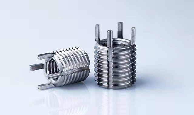 插銷螺套是一種內外都有螺紋,外螺紋上有四根或者兩根插銷鍵的特異緊固件,插銷螺套裝入攻絲后的底孔中,再把四根插銷壓入,起到強勁的緊固作用。產品主要用于軍工、航天、鐵路機車、振動機械等對螺紋強度要求較高的產品上。